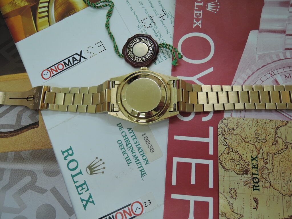 👑✨ROLEXの最高峰✨・男なら・一生に一度は・手にしたい❕💗💛・この圧倒的な存在感❕💗💛・・⌚・・✨18KYG無垢製✨・・『Ref18238A💎・E品番・1989年~1990年製』✨💗・(o^―^o)ニコ・『韓国』・から・初期E品番・で・A💎ダイヤ”金”文字盤✨・36mm・DAY–DATE様✨❕💛💗✨”金”無垢MAX!💛✨『💗年内最後の💛3連休💛に✨お買い¥得価格✨な・”金”文字盤✨A💎ダイヤ✨&✨”金”文字盤・Tトリチウム夜光✨ピカピカ✨ほぼ傷無し✨Ref18238A💎✨・は・如何ですか❓Prプレジデントブレス(22コマ・O刻印・1990年製)💛💗💛💗✨アンニョンハセヨ・な・韓国経由❣・✨当時の赤タグ付き❣💛💗💛💗・”完品”❕❣・・・魅惑の✨”DAY–DATE”✨入りました❕💛💗💛💗”一目ぼれ”間違い無し❕❣・・生産終了品 初期型”E”品番・1989年~1990年製!✨18KYG無垢製✨ ROLEXブランド最高峰『デイデイト』💛💗💛💗36mmケース 誰もが”一度”は手にしたい!!デイデイト ”・✨金シャンパンA💎ダイヤ✨文字盤&Tトリチウム夜光❕❕ 100M防水 自動巻! サファイヤクリスタル風防(👑王冠透かし無し)❕ ギザギザ・フルーテッドべゼル!✨👑王冠竜頭✨❕❕当時の豪華茶革製ROLEX黄金バックル付純正BOX(内)!程度もご安心ください!✨✨完品&美品✨✨・・ROLEX国番号・413・韓国・経由入荷❕❣・・・( ^ω^)・・・ただいまONOMAXでは『1回払い~24回払いまで・”無金利”(他~60回も有りMAX)・ショッピングローンが絶好調❕❕』