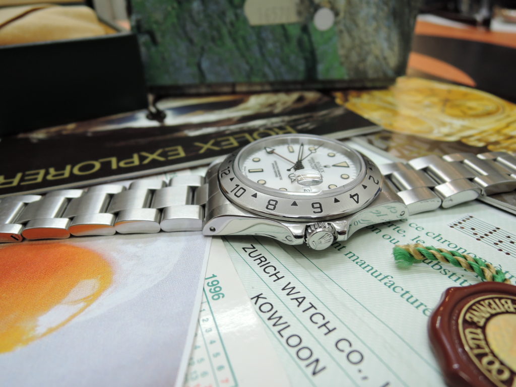 ・ミラクル品番・”Wの奇跡”・1996年製・『・”W”品番・濃い・”黄身色”・Tトリチ・白文字盤・からの・”ベージュ生成り”色・変化中・文字盤・目玉焼き・到着!!』HONG KONG香港経由・良い意味で・ヤオマンタイ問題有り・文字盤中心に・有りMAX!・・これから…ムフ・・期待大!!・とても綺麗で・濃厚・な”黄身色”に焼けた ”T・トリチウム”が最高です!・HONG KONG・香港・より・朝飯ブレックファースト・”目玉焼き様”・が届きましたよ!・・”濃いイエロー色”・な”EX2・白”を さあ~ 召し上がれ!!・・・・”W”品番・な”24年”物のは 如何ですか? ・・・ここでさらに・”レア”ポイント・の発見が!?!・白ホワイト文字盤・が?・・なんと!?・”ベージュ生成り色(アイボリー化)”に変わっています!・”ダブルWツイン”・焼け・MAX!!・・さらに焼く・”黄身色”・&・”生成り色”・に変わってきた・・・焼け・WHITE 白 ホワイト”で決まり!・・・ROLEXスポーツ高騰の中 ・・今なら・・まだ・・この価格なら買える シリーズ! 文字盤の”白色からの焼け生成り色”と・Tトリチウム夜光・が 良い色に焼けた目玉焼き”黄身色”が見事な自然の芸術品です!「 これを購入する”あなた”が ”Wツイン焼け”の進化を続ける未完成な 芸術品を 是非”完成”に導いて下さい!!」腕時計職人にお願いして”OHメンテ”完了!・・・”SWISS-T<25 ”表記 で S”シングル”バックル な T ”トリチウム”EXⅡ”白”入りました!”オリジナル”をこよなく愛する時計病”重病患者”様たちに絶大なる支持モデル!プライスがどんどんUPする”5桁スポーツ”の中で まだ”安価”?で入手できるRef16570!皆様大好き”奇跡POINT”満載!!!生産終了品 &美品な”USED”最後の”40mm”ケース!1996年製(平成8年) ”W ”品番 エクスプローラーⅡ ”Wダブル”でこれからの色の変化が楽しみ”黄身色”から何色に?”日焼けトリチウム”と白ホワイト文字盤が・”生成り色”・に・変化中・文字盤!!・3針&24時間針 共に 純正”Tトリチウム”夜光! SSステンレス製アラビアベゼル 40mmケース 100M防水 自動巻 当時のままのサファイヤクリスタル風防(王冠透かし無し)&今はもう存在しない裏ブタ純正・16570王冠・緑色シールがまだ貼ったままで残っています! 3連オイスターハード”Sシングル”ロックブレス(ほぼ伸び感は感じられません!フルコマ・V刻印~1996年製) 当店にてOHメンテナンス済み!・使用していたのですが擦り傷等はほぼありません!・ケースはブクブクと”太っちょ”ケースで”バキバキ&キレキレ”です!このプライスならまだご納得!爽やか”W”で・目玉焼け・ 文字盤白色が進化中・”EX2白”・が やって来た!”S”シングルで 焼け”T”トリチな”焼け白”文字盤&美品&完品・これから楽しみ・・”希少”モデル!・で・・とても・・”モウマンタイ問題無し”・HONG KONG・香港・経由入荷!!