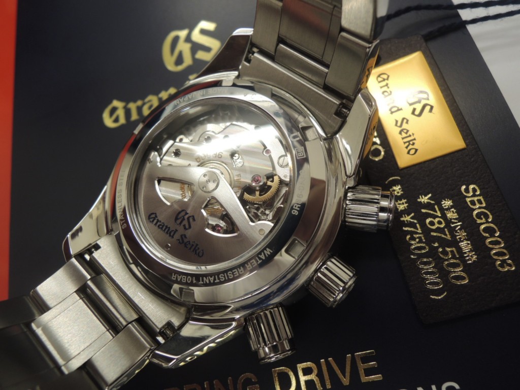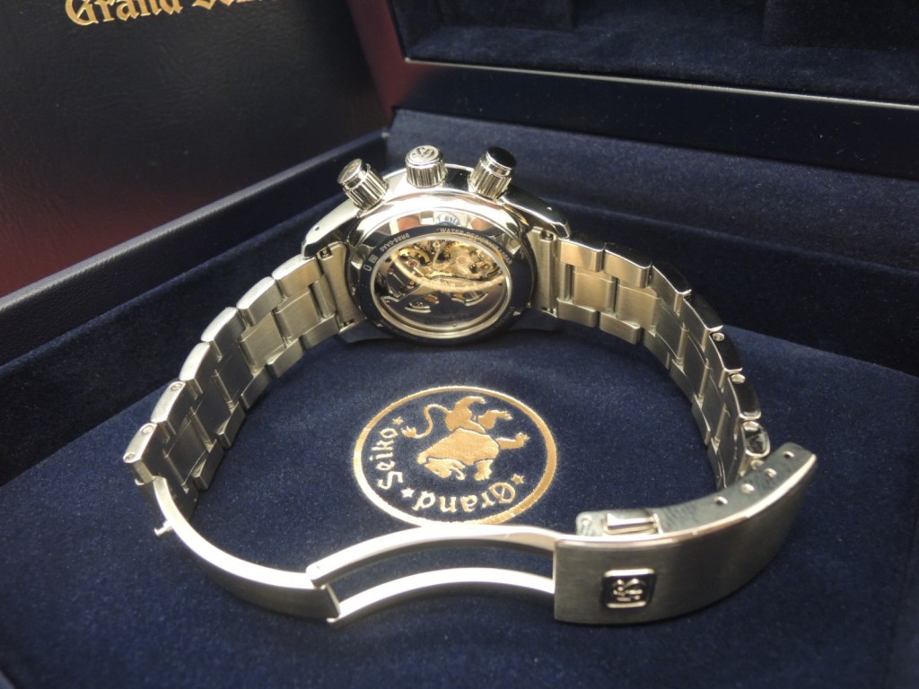 当店”初”の”グランドセイコーマスターショップ限定モデル・スプリングドライブクロノグラフ”の入荷で御座います!表情はアクティブに装う王者の風格で御座います。こんなにも内容が充実している時計は無いと思われる程です・言うなれば「全部入り」。世界と戦える日本屈指のモデルでは無いでしょうか?細部にまで細かい配慮が感じられます。たとえば競技用ストップウォッチを手本として押す時の感触をそのままに再現してあります。是非一度この感触を味わい下さい。中々市場に出にくいこのモデル・グランドセイコーではスプリングドライブ”初”のクロノグラフモデルです。前オーナー様もコマを調整しただけで、そのままの状態です。保証書日付け2013年5月5日まだタップリメーカー保証も残っています。この超絶美品をゲットするのは”あなた”です。早めのご連絡お待ちしています。