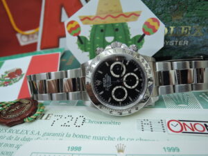 ・・✨✨付属品✨✨・・ROLEX純正BOX(内・外)付!&保証書(・紙製・パンチ抜き・国番号720・南米メキシコ・)・当店にて・OHメンテ済み❕✨ホヤホヤ状態!!・✨”A品番”A1シリアル✨・✨1998年~1999年製!✨・デイトナ SSステンレス製 ✨自動巻名機”エルプリメロ”cal4030搭載✨ ・オリジナル黒🐼文字盤!&針・共に✨ルミノバ夜光!!✨ 40mmケース ・安心100M防水!当時そのままサファイヤクリスタル風防(王冠👑透かし無し!)!✨ SSステンレス製タキメーターベゼル!!✨ブレスの状態は年代を考えるとさほど伸び感は感じさせません・✨後期の証FF一体化フラッシュフィット✨ 3連オイスターハード・Wロック・王冠👑バックル・ブレス✨(・12コマ・AB刻印/1999年~2000年製)・✨保証書ケース(緑革製&小サイズ)✨・赤タグ・小冊子×1冊(・YOUR ROLEX・)✨・ROLEXカレンダーカード(1998・1999)✨・変態常連様・経由・緊急入荷❕💛💗