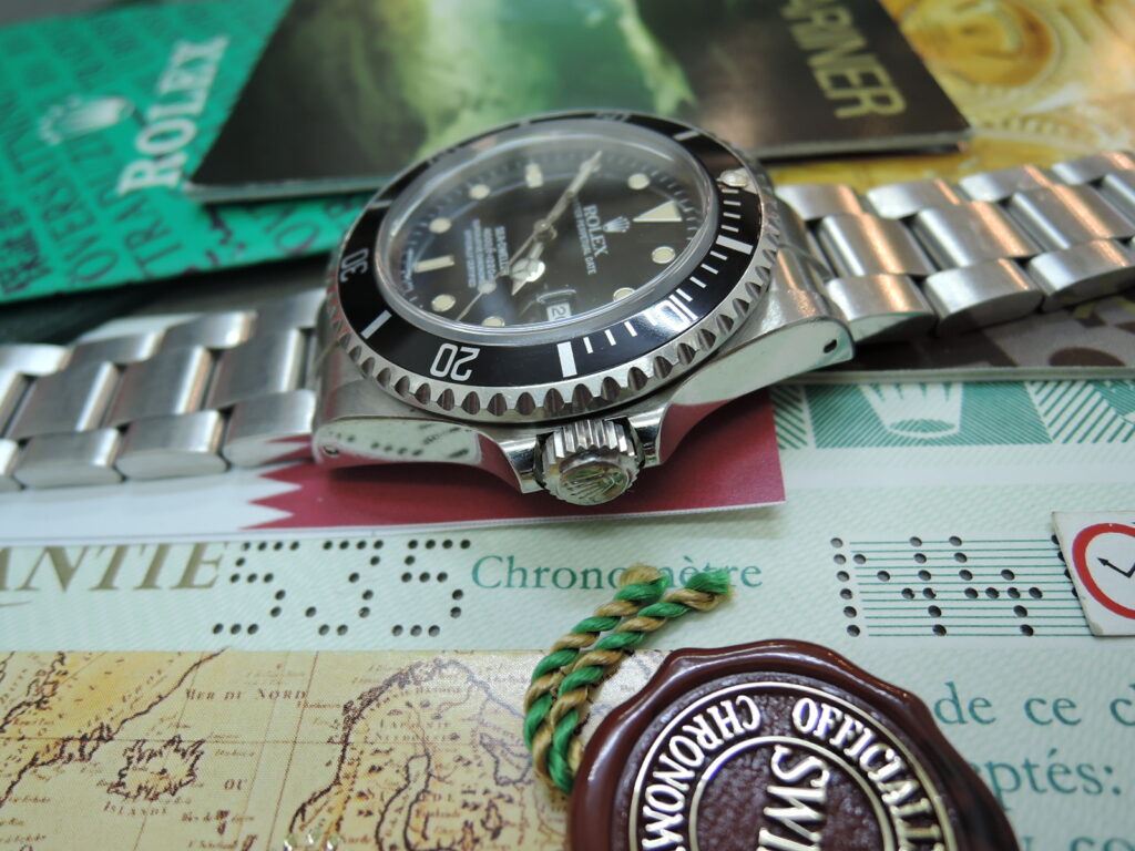 ✨✨付属品✨✨・『Nの奇跡❣』・✨Tトリチ爆焼け✨・32年物・ワンオーナー&ノンポリッシュ磨き無し!・当時のROLEX純正BOX(内・外)保証書(紙製・パンチ抜き・国番号535・西アジア・カタール経由・)・・ ”1992年~1993年製 N品番 40mmケース 1220M防水 ✨SSステンレス&Tiチタン合金製✨ 自動巻 当時そのままサファイヤクリスタル風防(王冠👑透かし無し) Tトリチウムがかなり濃い色に・焼けて・”雰囲気抜群”・美肌な・荒れ無し・剥がれ無し・黒BLACK色文字盤&3針&”爆”焼けたルミナスポイント・共に純正Tトリチウム夜光 焼けたルミナスポイント付き黒色プラスティック逆回転防止べゼル ケースサイド”ヘリウムガス”エスケイプバルブ付 💗💛💗💛今でも綺麗に貼ってますROLEX純正裏ブタ緑色Ref16600&👑王冠マークシール付き&裏蓋純正パテント刻印入 💗💛💗💛3連オイスターハード ”フルコマブレス”エクステンション付バックル(R刻印~1993年製) 保証書ケース(緑革製・小)&カレンダーカード(1993・1994)小冊子×2冊(YOUR ROLEX・サブマリーナ)・・当時の赤タグ!・ 完品&美品入荷!生産終了品!最強ダイバー伝説モデル!!