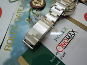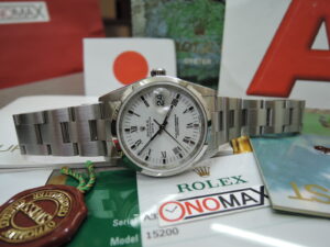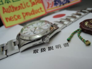 『ただいま✨商談中✨です❕💗ショッピングクレジットローン審査中💛』✨✨✨( ^ω^)・・・・・・✨偶然の産物🗾JAPANでたまにある珍品モデル❕💗💛✨『34mm・Ref15200・白スモールローマ文字盤&トリチノバ・』✨皆様大好き💗日本正規品💛✨✨✨A品番なのに❓・カード型保証書❓❕はてな(・・?💛✨✨✨✨A品番(1999年~2000年製造)は通常・1999年当時・販売されれば紙製の保証書なのに・たまたま・2018年に販売されたので『カード型保証書』なのです❕💗💛✨✨✨A品番・な・34mm✨白スモール✨ローマ文字盤✨(T SWISS MADE T 表記・なのに・ルミノバ夜光)・通称トリチノバ・文字盤✨・Ref15200は如何❓❕✨”ワンオーナー&ノンポリッシュ磨き無し”❕岩手県経由💗💛❕✨✨ONOMAXの変態常連様”ありがとうございます”❕✨『2018年・当時の岩手の正規店”金庫”で約”18”年間は眠っていたのでしょう!』✨ある意味・奇跡です✨ A品番(1999年製)!ROLEX純正”裏ブタ日本正規品の証・裏ブタ👑王冠マーク緑色シール付き”💗💛❕✨・・・・・✨”白スモール✨ローマ”入荷!❕✨❣現行サイズ では 中々無い メンズな”34mm”ケース! SSステンレス製 生産終了品 OYPD オイスターパーペチュアルデイト ”白スモール✨ローマ”文字盤 ・通称トリチノバなルミノバ夜光・ 自動巻 ✨✨サファイヤクリスタル風防(王冠👑透かし無し)✨希少ポイント✨今はもう既に無い希少な裏蓋”緑王冠”シール付!横にしても全く垂れない真っすぐストレートな3連オイスターSシングルバックルブレス(フルコマ・X刻印・1999年製)!!✨・完品&JAPAN岩手コンプリートモデル”奇跡”の入荷!!