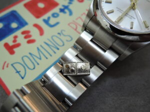 『ただいま”完売”です❕💗💛』✨✨✨✨ついに❣2020年版✨ドミノピザ🍕”DOMINOS PIZZA”Wネーム✨USA経由✨入荷❕❣✨✨『”美品”USED品・』✨✨・先日・ONOMAX変態常連様から・某有名中野の並行店にて・2021年にRef126000・”36mm”・✨ドミノピザWネーム✨・を・ゲット・で・大切に使用して・・✨キレキレ&バキバキ&ピカピカ✨状態✨で・・先日ONOMAXへ❣✨✨・・・買取・無事・完了❕小腹がすいたのでデリバリー”PIZZA”を注文!30分後「お待たせしました!USAアメリカより今朝届いた2020年版”DOMINOS PIZZA”Wネームお届けに参りました!」皆様注意・そんなサービス有りません!現在”進行形”モデル!✨2020年製 ランダム品番 大人気Wネーム”ドミノピザWネーム”OYPオイスターパペチュアル 36mmケース 銀シルバー金色GOLDバー文字盤 自動巻 100m防水 サファイヤクリスタル風防 ルーレット刻印入&裏蓋ドミノピザマーク刻印入!ROLEX純正べゼルカバー付 3連オイスターハードシングルブレス(12コマ)ドミノピザ”インゴット”付 ステンレス製 希少!2020年版”DOMINOドミノ”なUSA経由&完品モデル入荷!💗💛