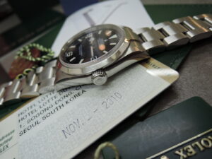 ✨ROLEX国番号413・アンニョンハセヨ な ”韓国”から✨ノンポリ・磨き無し✨バキバキ✨状態✨V品番V7シリアル❕💗💛・ザックリ15年物の・Ref11427・EX1様が”完品”✨で来日❕💛💗・・・今・この状態は中々無いはず❕・急いで❕❕・・”最強”・・『ノンポリッシュ磨き無し・Ref114270・ほぼ最終V品番』なプレゼンを・あなた・に!!💗・・”・今のうちに”ゲット”せよ❕💗 ONOMAXが自信を持ってお奨めしMAX❕💗・・1年後には・・いや・・直ぐに・・皆「これ買っとけばよかった!」と思うはず!!・・・・皆様覚えといてください!今後・時計業界・を・・まだ”100万以下 ”で買える・5桁スポーツ・の・嵐あらし・が・吹き荒れ・る事を!!・・・極上USED・ワンオーナー&ノンポリ・モデル・💗変態💛・ノンポリ・磨き無し・コレクター変態常連様より 緊急入荷!!「・美品・”ノンポリ”で”変態様保管”で”日本正規”で ”永遠の”本当の最後の”36mm ”ケース !!レアポイントな・みんな大好き・とても希少な・・そしてこれからも・・”最強・✨ほぼ最終な・V品番V7シリアル✨”ですよ!」・”THE SOUTH KOREA・韓国・ソウル・コンプリート”・”希少”な生産終了品 ・極上美品状態・”ワンオーナー&ノンポリッシュ磨き無し”モデル!・変態様・大好き”2010年製 ” V ”品番 ・シンプルisべスト・エクスプローラー1・黒BLACK色・3・6・9・文字盤&3針・ルミノバ夜光・!!SSステンレス製 !永遠の・・本当の”最後”の36mmケース 100M防水! 当時そのままサファイヤクリスタル風防(王冠👑透かし有) ・横にしても真っすぐストレート状態・伸び感を全く感じさせない・バックルの開閉も・重力に負けず・重たい・SSステンレス製3連オイスターブレス(・フルコマ・調整済み・LT刻印・2009年~2010年製)・&・・しつこいようですが ”ノンポリ”で”変態様保管”なので当たり前ですが”バキバキ&キレキレ”です!希少ポイント・探してみてください!・この状態は・何処にも無い・V品番”完璧コンプリート”なんです!!完璧・韓国・完品・ノンポリ磨き無し・極上USED・皆様”大好き”ポイント満載・6桁スポーツ”モデル!・な・・✨ROLEX国番号413・アンニョンハセヨ な ”韓国”から入荷!!さあ急げ!・・見逃すな!・・・”幸運”あれーーーーーーーー❕💗