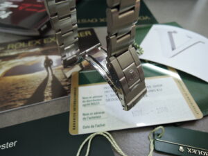 ✨✨付属品✨✨・生産終了モデル ・新品みたい美品・”ワンオーナー&ノンポリッシュ磨き無し”・当時のROLEX純正BOX(内・外)&保証書(・カード型・V品番・韓国 ソウル・2010年11月)・2010年製 & ”V”品番 ・エクスプローラー1・黒BLACK色・3・6・9・文字盤&3針・ルミノバ夜光・&・ルーレット刻印入り・SSステンレス製 ・36mmケース 100M防水 当時そのままサファイヤクリスタル風防(王冠👑透かし有) !・横にしてもほぼ真っすぐストレート❕全く伸び感を感じさせない・✨バックルの開閉も・重力に負けず・重たい✨・SSステンレス製3連オイスターブレス(・LT刻印・✨2009年~2010年✨・フルコマ・調整済み・)・✨小冊子×3冊 ✨赤タグ&緑タグ(シール無し)✨ 新品みたいな”最強”状態・V品番・36mm・EX1・6桁スポーツ”さあ急げ!・・見逃すな!・・・”幸運”あれーーーーーーーー!!