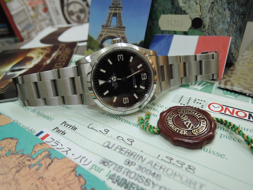 ✨✨『💛💗・ボンジュ~~ル・な・仏 おフランス・🌸華の都・PARIS・パリ・より✈🚢来日❕💗💛❣・』✨✨『✨1月11日✨1並びの日に・✨EX”1”✨・1998年製・Ref14270・Tトリチ仕様”最終”シリアルの💗U品番・ノンポリ・バキバキ・モデル✨✨”最終MAX”¥価格✨✨で 持ってって❕💛・・』✨✨✨圧倒されMAX❕💗半端ない❕💛✨✨極上のUSED品✨✨ミントコンディション状態✨最後のTトリチウム夜光仕様年代『~1998年製✨U品番✨36mm・EX1✨・・再度注目の✨“原点回帰“✨・な・Ref14270モデル❕❕💗✨純正Tトリチウム使用の最終U品番✨💗・~1998年製・Ref14270・『ケース横穴●無し』・黒色✨”美肌”✨の”極上”美品です!・✨&✨バキバキです!・『✨”綺麗”な💛Tトリチウム夜光』・EX1・U品番・U5シリアル・1998年製』・・・”U”ユー・は・何しに❓日本へ❕💗💛約30歳 仏PARISから来日 ✨EX1・14270様✨ オーナー談『見👀てください経年劣化無しの・黒色✨美肌✨・が・際立つでしょ❕💗💛』・・・・ONOMAXから・良いモデル・を・お値打ち価格・で・持ってって・情報!! ・永遠36mm・369文字盤・「程度が良いです!ONOMAXが保証しMAX!」”激安 ”・MAX・プライス発令!!ONOMAX名物!?Tトリチ&”Wロック”バックル!”Ref14270・後期型・”最後”の・Tトリチ・シリアル・”U”品番❕💗💛な美品&完品”なんです!!・・・・この ”価格なら”まだいけMAX!!・・やっぱり”あなた”は 魅力的!!その素朴さ・・・直ぐ ”欲しくなる”ん だよなぁ~!! ”T&W ”で U番な ”14270”・完品・入荷!!オーナー談「当時 ”新品”で買いまして ✨✨綺麗に 綺麗に✨✨大切に 使ってきましたよ!メンテもちゃんとして傷もほぼありません❕💗💛‥磨くの嫌いなんでそのままです!!MAXさんが好きな ”Tトリチ”ですよ!・”Wロック”・も・・・良いでしょ!ブレスも横にしても・・真っ直ぐストレート・・だよ!」・確かに!!・程度・が抜群ですね!これなら変態さんも喜びMAX!!YES YES YES ”安く”売ります!!”U品番”で・”T・トリチ”な”S・シングル”は如何ですか? 皆様ご存じ 生産終了品 ”1998年 にて販売” U品番”36mmケース!当店にてOHオーバーホールメンテナンス済み!✨✨いまもまだ残っています💗💛裏ブタ純正緑色👑王冠&Ref14270シール付きです!✨✨永遠のシンプルisベストの決定版!エクスプローラー1 男女ともに愛される✨経年変化なし美肌✨黒色 3・6・9 BLACK文字盤!綺麗な純正”Tトリチウム”夜光!3針も勿論・Tトリチウム夜光!当時のままのサファイヤクリスタル風防(王冠👑透かし無し) SSステンレス製スムースべゼル 100M防水 自動巻 3連オイスターハードSS製”Wロック”ブレス(全然伸び感は感じさせません・フルコマ・U刻印・~1998年製)&当時の赤タグ付✨ まだ・・・この位の”プライス”のうちに・・・”ゲット”しておきませんか?!!ケースも”ブクブク”太っていて・”ケースもブレスも”キレキレノンポリ❕💗💛状態!美品状態!当店にて”OHメンテナンス済み!ムーブメントも絶好調!な MAX名物?!”T&W”Ref14270・仏 おフランス・🌸華の都・PARIS・パリ・経由・入荷❕💗💛