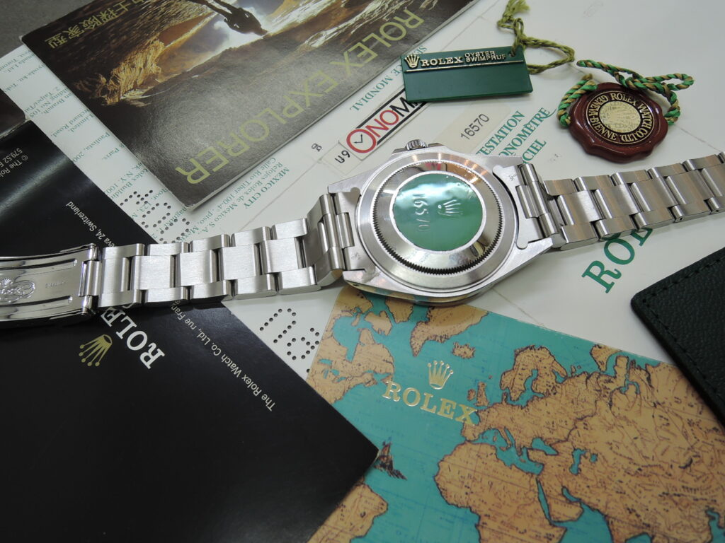 さあ!週の始まり❕💗・に・✨28年物の『Ⅱツー』✨は如何❓✨で✨も✨💗安心してください❕💗💛(o^―^o)ニコ✨とっても・お買い得な・希少品なんですヨ❕💗1998年後期から1999年初期までの短い期間のみ生産された文字盤💛『オンリーSWISSスイス』表記文字盤✨✨・ほぼ最終”U”品番 U9シリアル”・極上USED”入荷!変態常連様 ”保管業務”ご苦労様でした!後は”皆様”よろしくお願いいたします!また・・また・・入っちゃいました!!「”モウマンタイ”な香港から来日」生産終了品 ✨✨綺麗な”USEDモデル”!✨✨・Ref16570 ・U品番・U9シリアル・1998年製 ✨✨40mmケース!大定番スポーツ!男女共に愛される・オンリーSWISSスイス・表記✨経年変化なし・の・美肌✨黒文字盤!・✨✨ルミノバ夜光✨✨・生産終了✨✨な✨✨ エクスプローラーⅡ ✨✨Ssステンレス製✨✨ 自動巻 100M防水 ✨✨今は”存在しない”希少・ROLEX純正Ref16570裏蓋王冠シール付!当たり前ですが?”バキバキ&キレキレ”状態!✨✨・伸び無し・3連オイスターハードフルコマWロックブレス(フルコマ・U刻印1998年製) 美品&完品・”モウマンタイでオンリーSWISSで問題無し”香港経由入荷❕💗💛