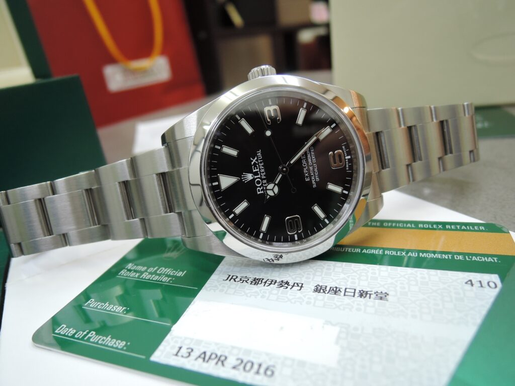 ・・✨本日・も・(o^―^o)ニコ・やっぱり・✨1ワン✨でしょ❕皆様大好き💗✨🗾日本正規品✨💗Ref214270💛39mm・Ex1・『前期最終2016年製●ブラックアウト●仕様✨”鏡面バックル”✨・モデル!』が✨”ONOMAX特価”✨だーーーーーーーーーーーーーー❕❣』・・皆さまご存じ・2016年に・✨生産終了✨・古都京都の老舗百貨店・✨・から上京❣❕今や”希少”な”39”mm・Ref214270・の・前期最終2016年製”✨『ブラックアウト仕様』✨ピカピカ”鏡面バックル”・✨バキバキ✨モデル!入荷❕💗💛・”美品 USEDモデル!”『ブラックアウト仕様』・2016年生産終了・!前オーナー様”綺麗・綺麗・綺麗”に・保管して・頂き有難うございます!(Thank You)!「Thank You・サンキュー・39mmケース!」・・永遠のシンプル is ベスト! エクスプローラーⅠ 3・6・9 ”ブラックアウト仕様”な黒文字盤 堂々たる風格”39mm”ケース ! ルーレット刻印入 SSステンレス製 自動巻 100M防水 3連オイスターハードWロックブレス(・フルコマ・12.5コマ・内径19cmMAX) !付属品も当然 問題無し・🗾JAPANコンプリート・な”完品”&秘蔵コレクションに最適な・古都京都の老舗百貨店・経由入荷❕💗💛