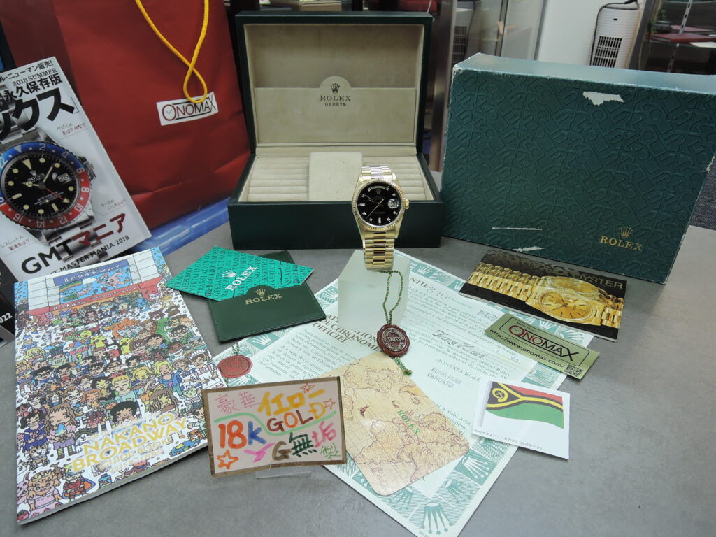 ✨✨✨『”最”優良個体』✨✨✨🌎南半球🏝南国🌞✨バヌアツ共和国・VANUATU・DFS・✨から遥々・やって・来たーーーーーー✨Ref18238A✨ーーーーーー✨DAY–DATE✨ーーー✨N品番・1993年✨ーーー✨黒A💎ダイヤ✨ーーーーーーーーー✨完品✨ーーーーーー✨が・ONOMAXへ❕💗💛( ^ω^)❕💗・金・黒・金・黒・A💎ダイヤ・💛✨”日”曜日の おすすめ✨”金”無垢✨DAY–DATE✨モデル❕✨✨Ref18238A💎ダイヤ『初期”N”品番』・✨N3シリアル✨・1991年~1992年製✨✨完品・で・✨ONOMAXに参上❕💛💗GO——-———-———❕💛💗眩しい輝き💗✨金✨黒✨金✨黒✨金✨黒✨金✨黒✨”金”無垢MAX!✨伸び無しPrプレジデントブレス💛✨『💗この🌸春🌸に💗王道のデイデイト✨A💎ダイヤ✨&✨”黒”●文字盤・Tトリチ✨初期N品番・Ref18238A💎✨💛💗』✨✨東京は気温上昇🌞・HOTな日・に・ONOMAXに・・とても✨”ゴールデン”HOT✨な🌸金ゴールド無垢✨🌸DAY DATE様✨が✨お得な¥プライスで行きMAX❕GO——————-———-———–———————-———–——-❕💗‥豪華❣・36mm・💗✨・Ref18238A・最高峰✨「デイデイト」様✨初期N品番・1991年~1992年製・伸び無しバキバキ・Prプレジデントブレス(23コマ・R刻印・1992年~1993年製)💛💗💛💗ありがとう❣✨変態様経由❣・✨当時の赤タグ付き❣💛💗💛💗・”完品”❕❣・・・魅惑の✨”DAY–DATE”様✨入りました❕💛💗💛💗”一目👀ぼれ”間違い無し❕❣・・生産終了品 初期型”N”品番✨1991年~1992年製!✨18KYG無垢製✨ ROLEXブランド最高峰『デイデイト』💛💗💛💗36mmケース 誰もが”一度”は手にしたい!!デイデイト ”・✨黒色●BLACK💎A💎ダイヤ✨文字盤&Tトリチウム夜光❕❕✨ 100M防水 自動巻! ✨サファイヤクリスタル風防(👑王冠透かし無し)❕ ギザギザ・フルーテッドべゼル!✨👑王冠竜頭✨❕❕豪華純正ROLEXBOX(内&外)!保証書付き❕💗完品💛程度もご安心ください・当然の”バキバキ&キレキレ”なんですから!✨✨美品✨✨変態様❣経由入荷❕❣